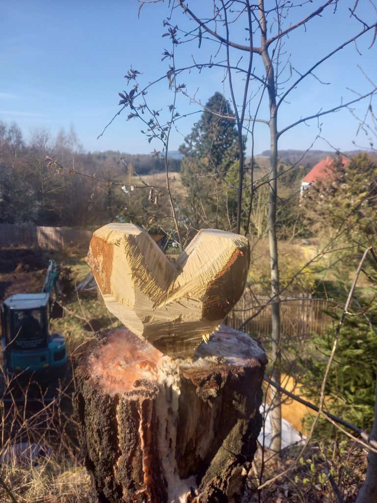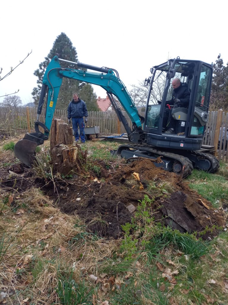 Und weil wir gerade so schön im Flow waren, haben wir uns spontan auch noch an eine vermeintlich „kleine“ Kirschwurzel gemacht – mit dem bekannten Ergebnis: Die ist jetzt auch raus.