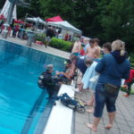 Wir sind am 11.08.2017 in TANA Ammelshain zum Jugendwochenende angekommen. 7 Vereine sind insgesamt mit ca. 29 Jugendlichen erschienen. Zuerst haben wir unsere Zimmer bezogen und wollten uns zu den anderen ans Lagerfeuer gesellen, dass jedoch auf Grund von starkem Regen ins Wasser fiel. Als Alternativveranstaltung haben wir uns gegen 11:00 zum See, für eine kleine Runde Nachtschwimmen, begeben. Nach dem Schwimmen haben wir den Abend mit ein paar Karten spielen ausklingen lassen. Der Samstag begrüßte uns bewölkt, doch nach dem Sonnengrußyoga geleitet von Patrick, zeigte sich auch die Sonne und wir konnten im freien Frühstücken. Dann war es endlich so weit. Wir konnten es kaum noch erwarten ins Wasser zu gelangen. Die Kurse APNOE und NABU (Tauchen im Naturschutzgebiet) begannen. Zoe und Helen nahmen an dem APNOE Kurs Teil. Um den Apnoekurs für alle 8 Kinder zu realisieren sind extra 2 APNOE Tauchlehrer aus Niedersachsen als